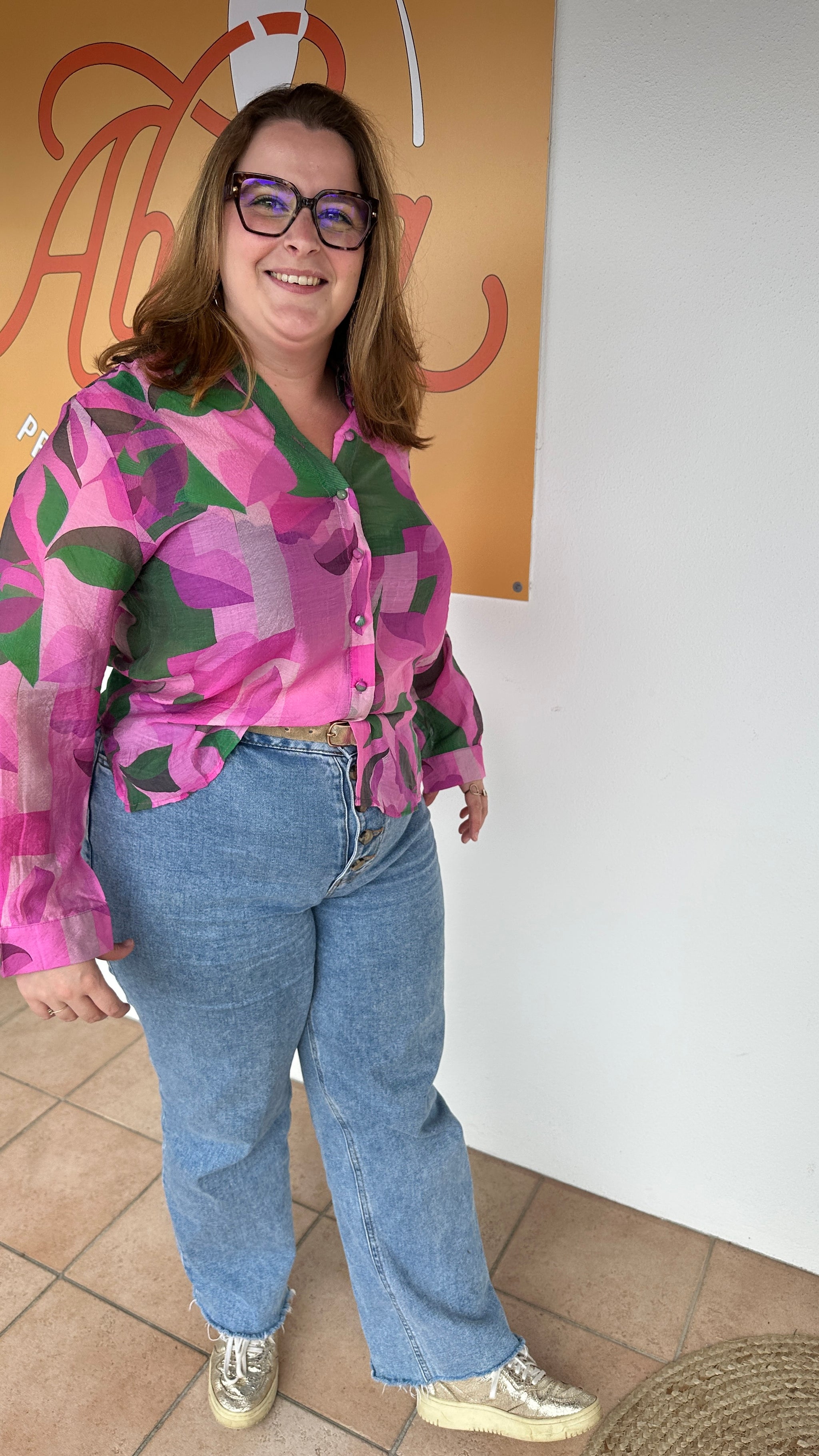 🌸 Chemise Jimi – Imprimé Rose & Vert