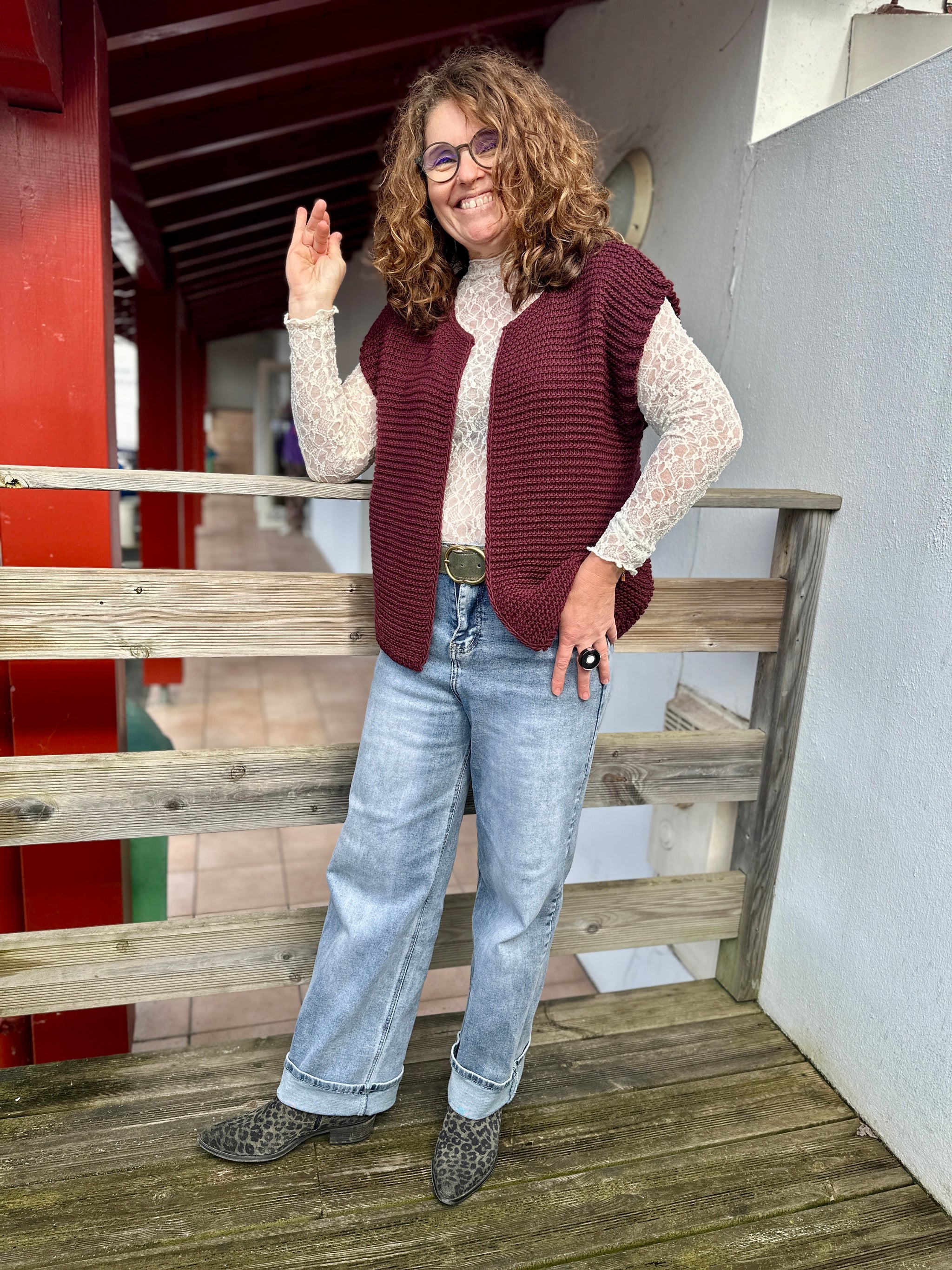 Chic et intemporelle, Élia est la veste sans manches en maille qui apporte confort et chaleur à ton look. Conçue en 100 % laine, elle est parfaite pour les journées fraîches et se superpose facilement sur une chemise, un pull fin ou même une robe. Sa coupe ample et ouverte la rend élégante et pratique, tout en conservant un esprit cocooning.