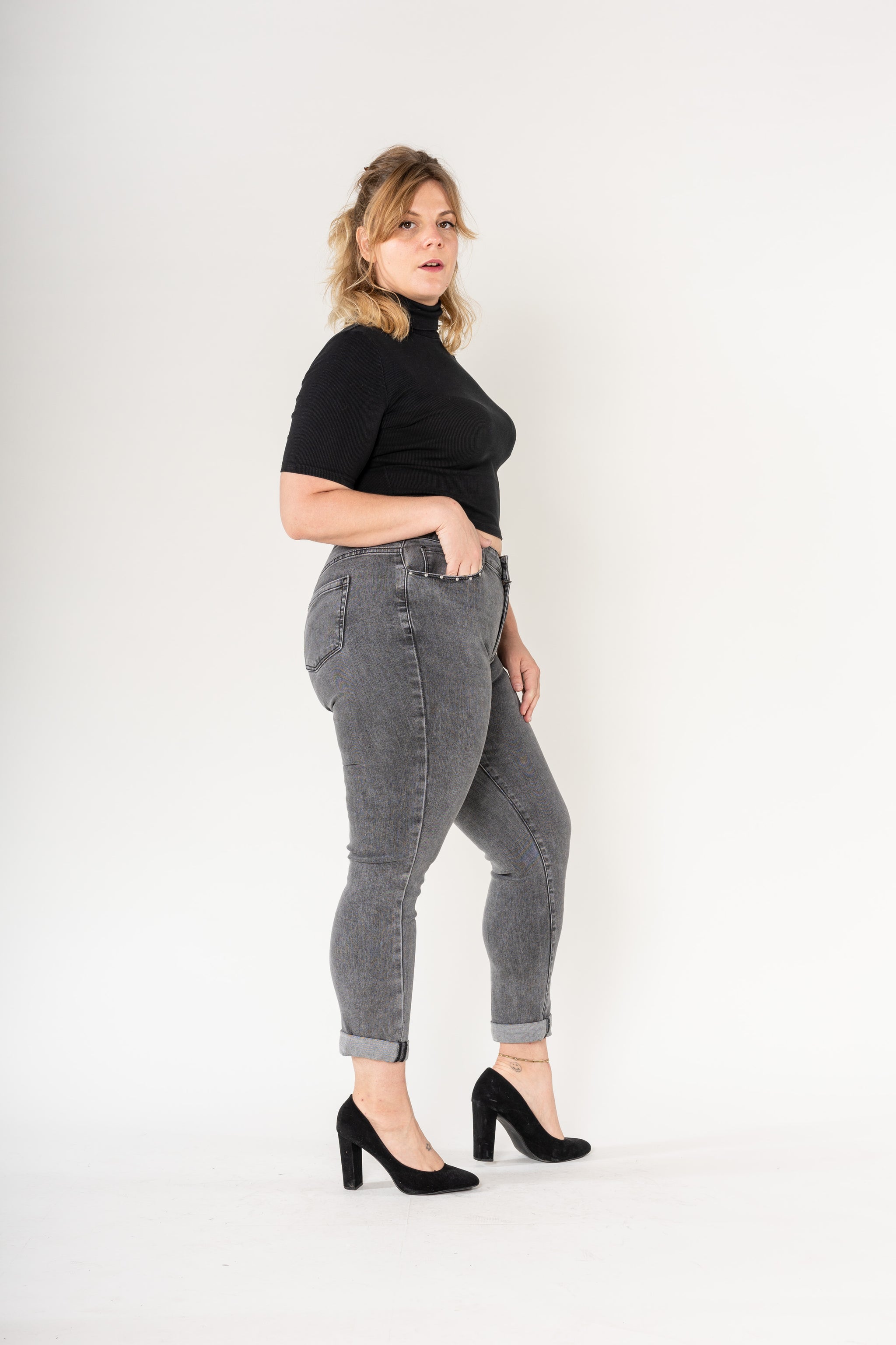 ⚡ Jean Gris Grande Taille Livia – Détails Clous Argentés